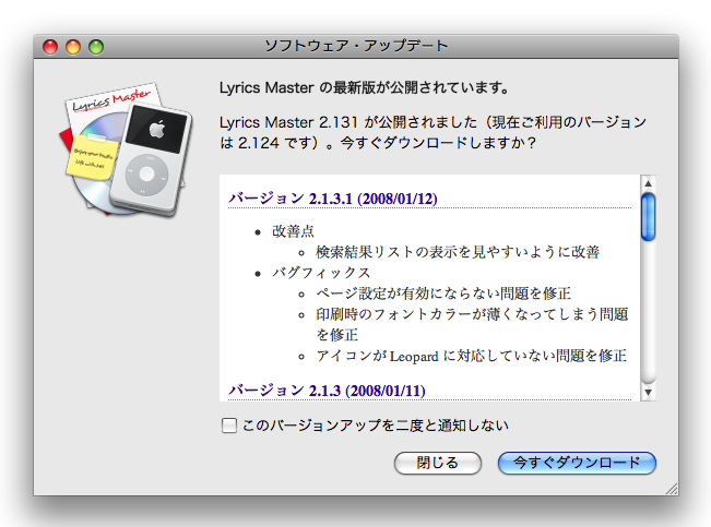 次のファイルをダウンロードして、既存の Lyrics Master に上書きしていただくことで、問題が解決します。