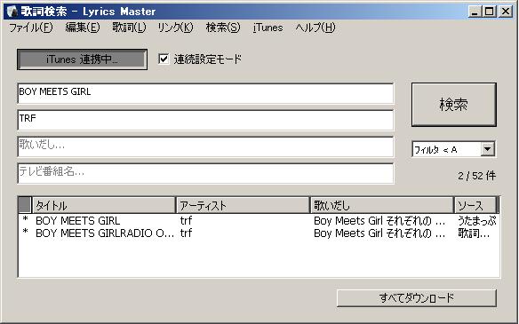- 歌詞GET!! の最大取得ページを 3 ページに減少しました。