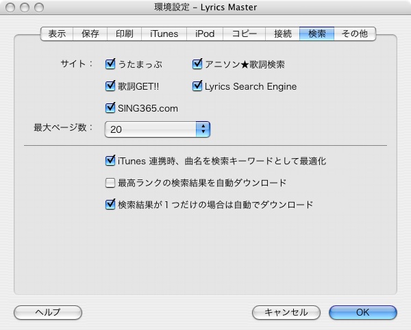 - 検索ページ数に制限がかかります(歌詞サイトさんの負荷が高くなりすぎるとマズいので)